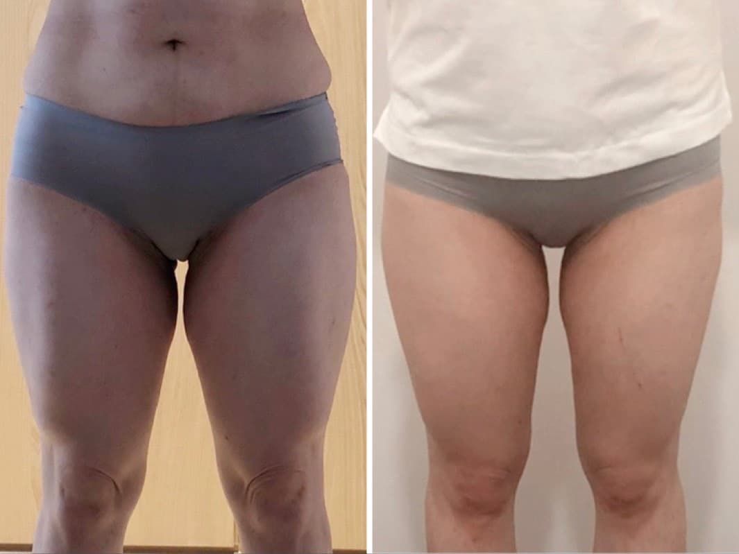 比起胯下打開兩道疤⋯⋯我覺得還是這樣就好~主要整體纖細很多,春麗腿也不見了!也可以穿緊身褲了,同一件褲子穿起來根本像兩個不同的人